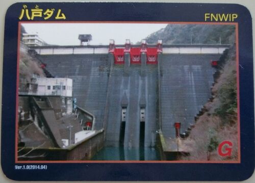 島根県江津市にある八戸ダム。 重力式ダムです。 洪水調節、河川の正常な流量の維持、上水道、工業用水、発電を目的に建設されました。