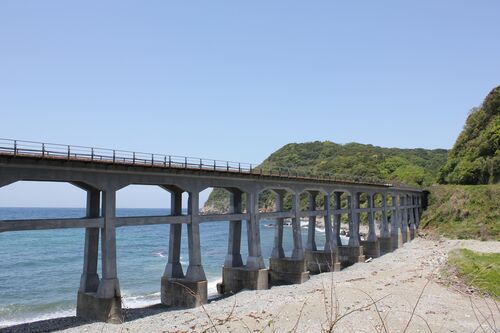 山口県阿武郡阿武町にある惣郷川橋梁。 JR山陰本線の須佐ー宇田郷間にかかる全長189メートルの橋梁です。