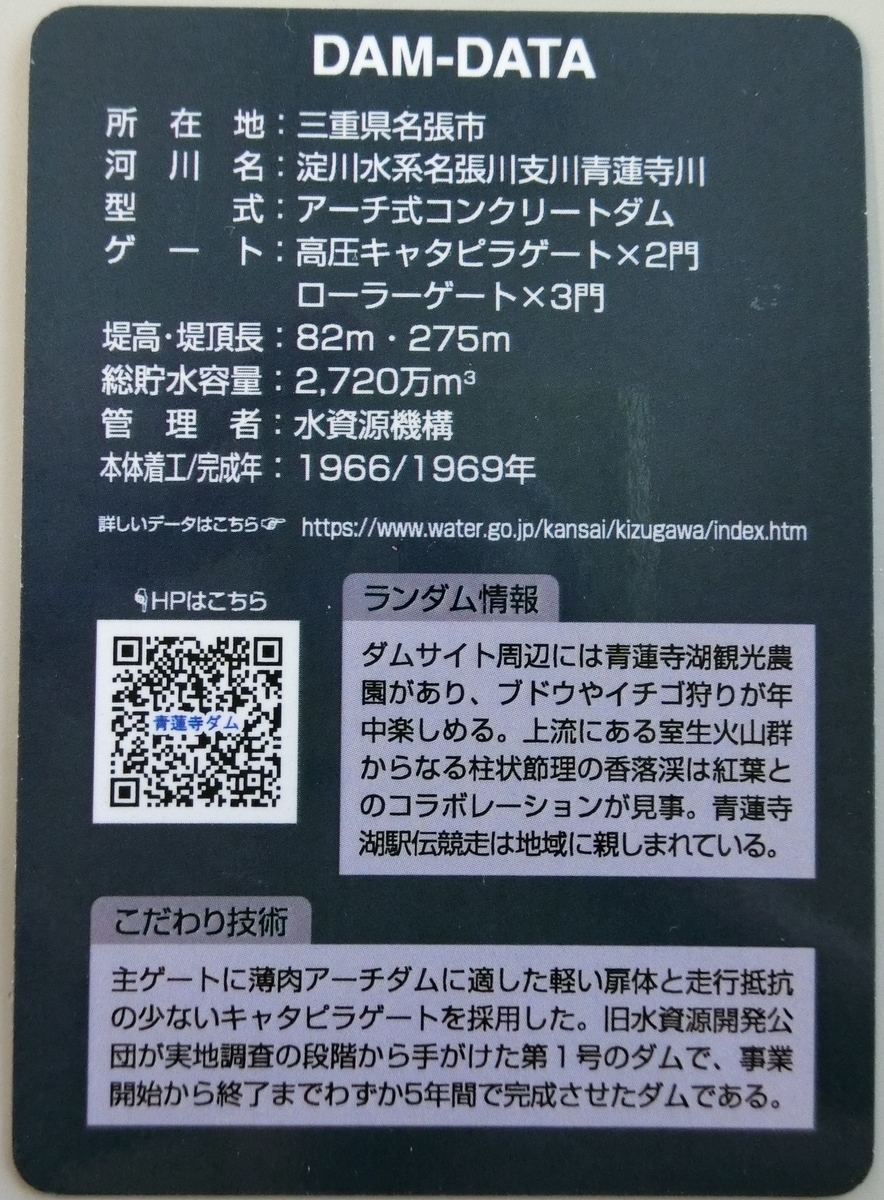青蓮寺ダム管理開始50周年記念のダムカード。